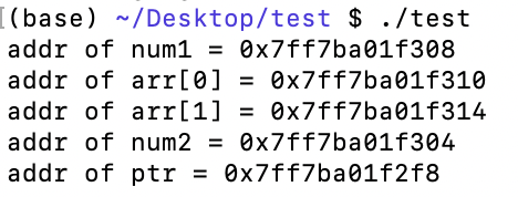 num1 - num2 - ptr - arr[0] - arr[1] .. 순서로 할당될 것, 이라고는 할 수 있는데 환경따라 다름