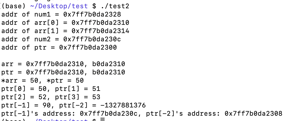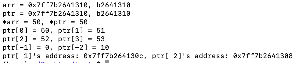 printf("ptr[-1] = %d, ptr[-2] = %d\n", ptr[-1], ptr[-2]);