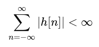 - LTI 시스템에선 임펄스 리스폰스의 절댓값 총합이 무한보다 작으면 만족함