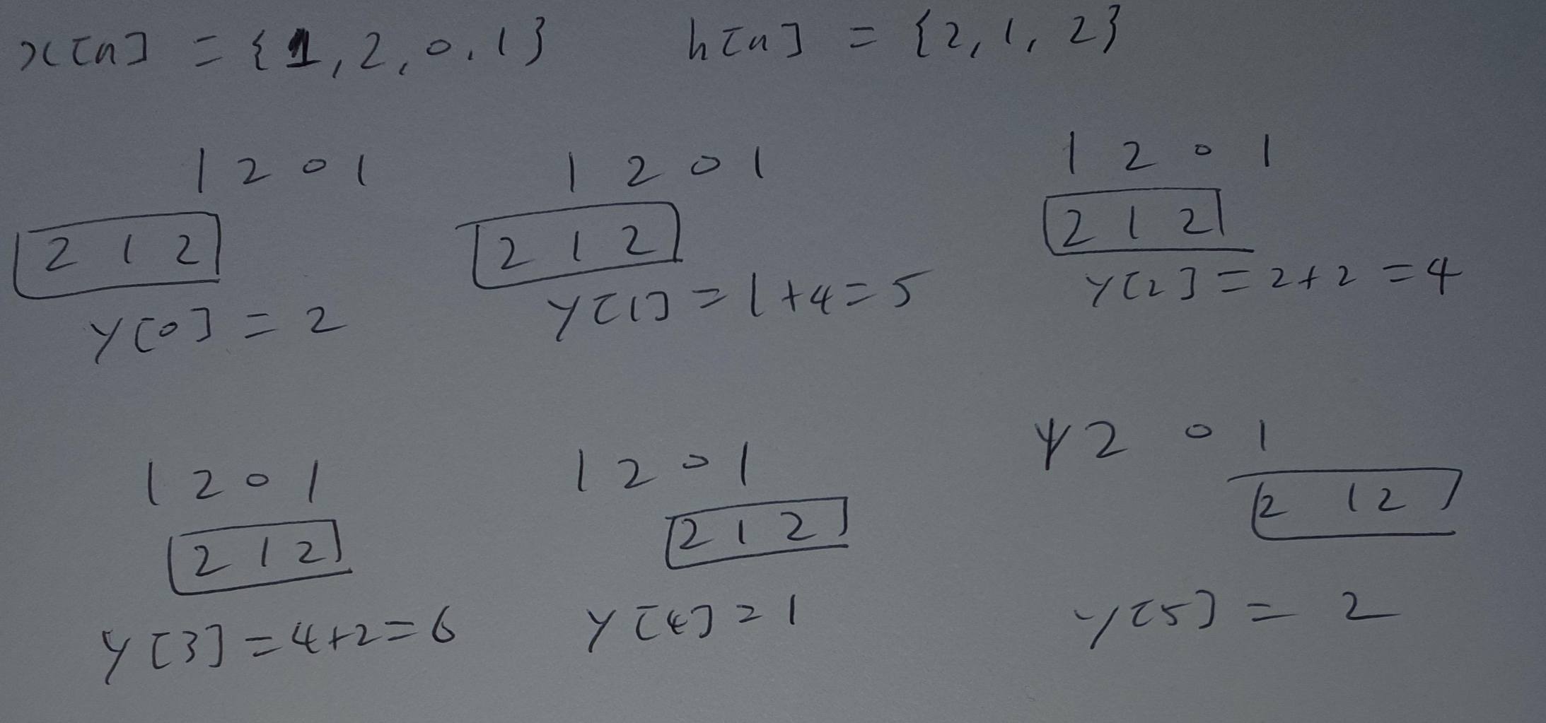 y[3] = x[0]h[3] + x[1]h[2] + x[2]h[1] + x[3]h[0] = 5