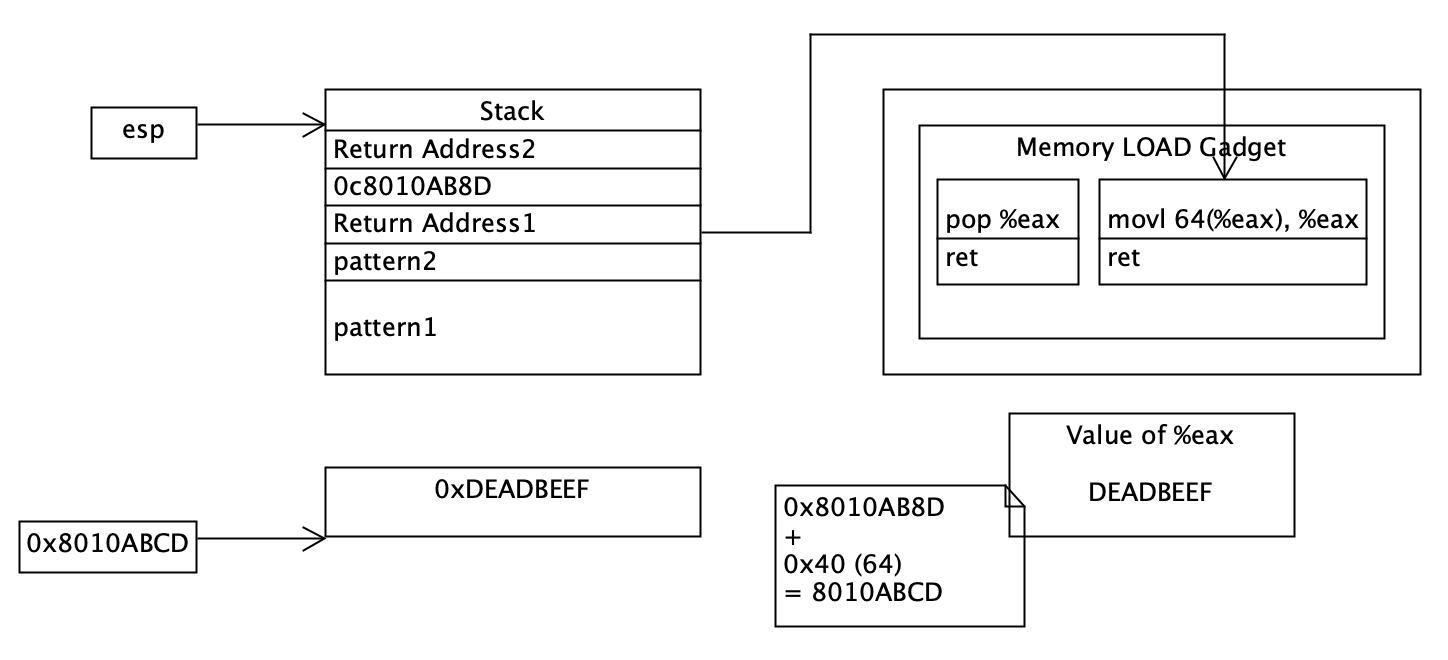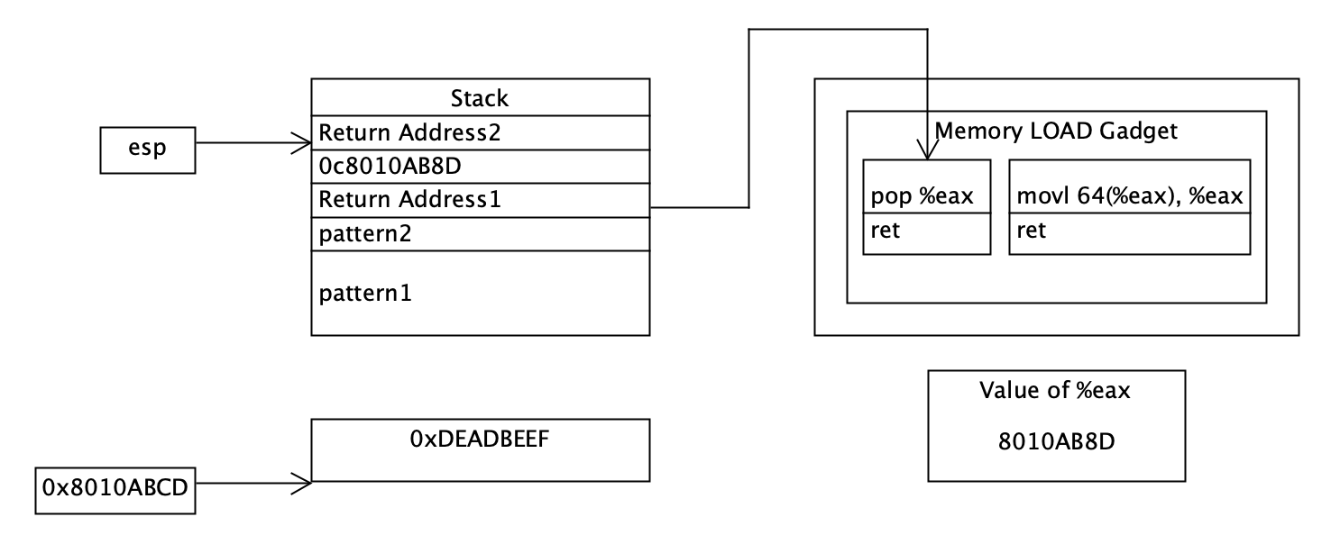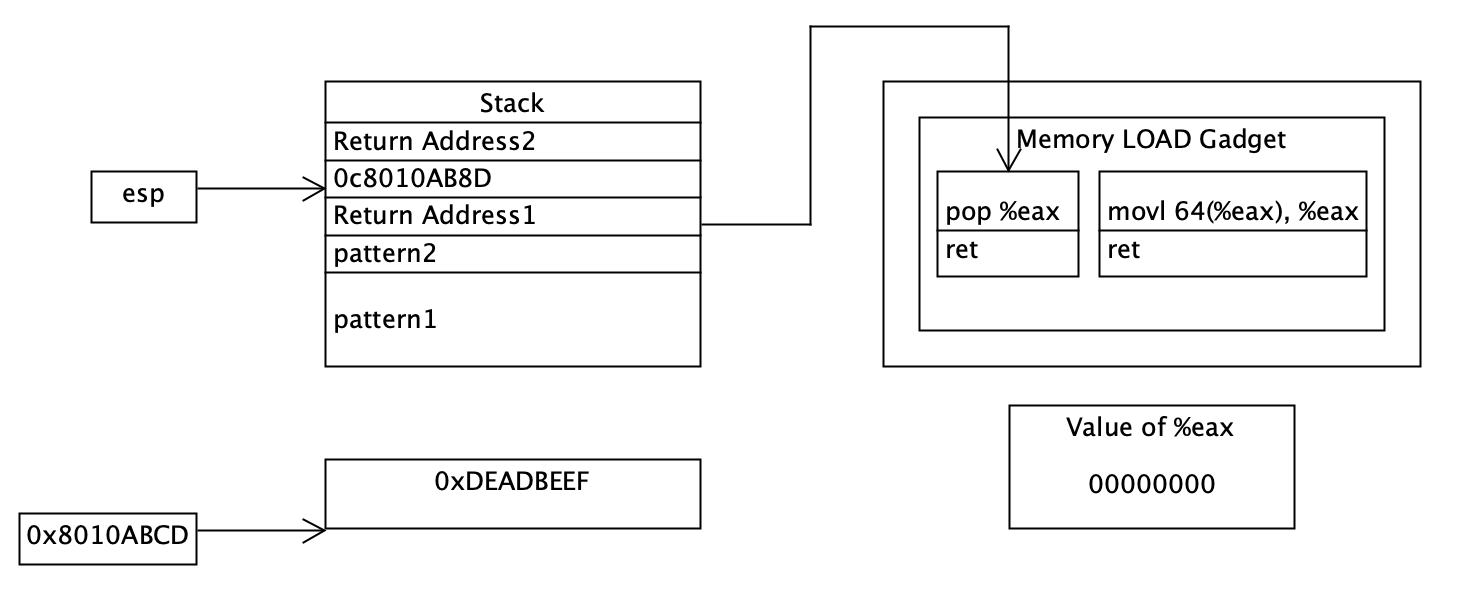 목표: %eax 레지스터에 0xDEADBEEF (pointed to by 0x8010ABCD)