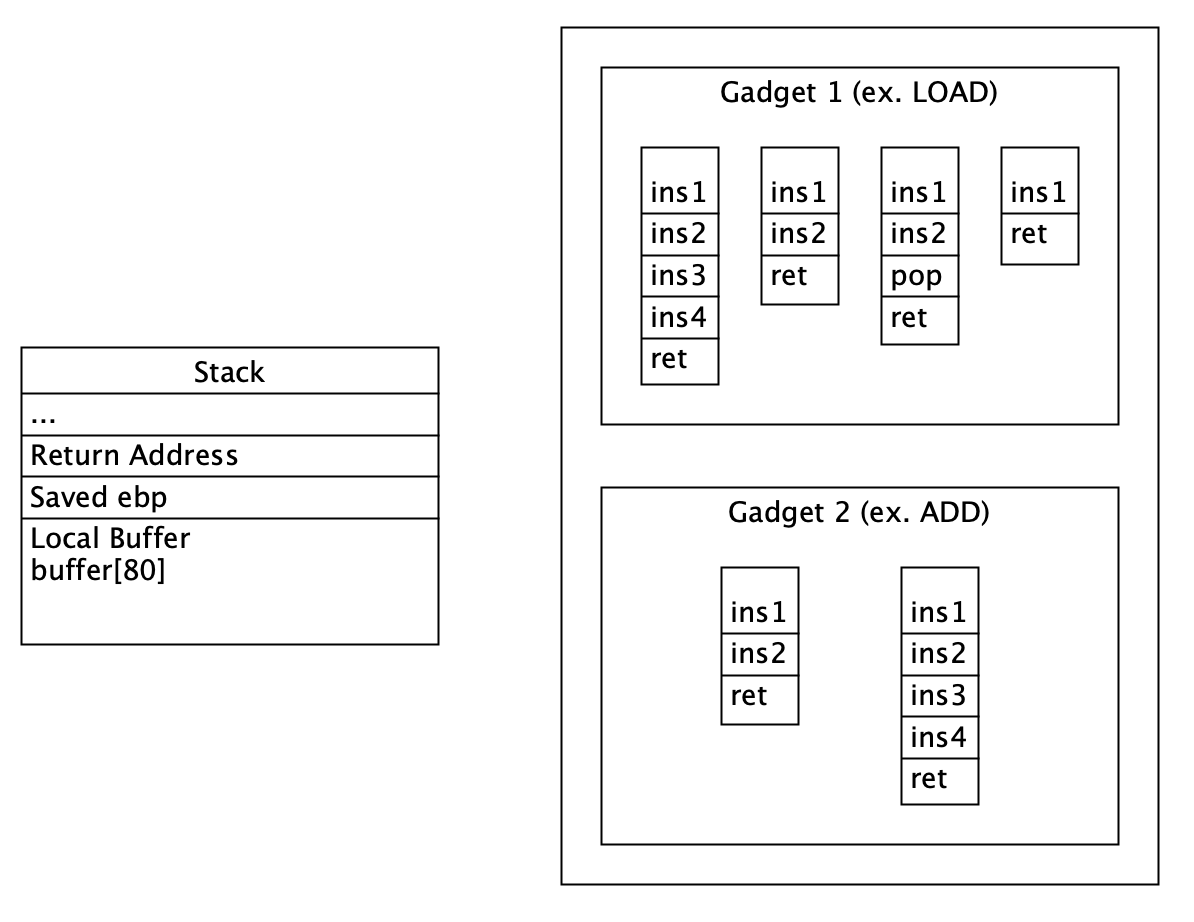 가젯은 특정한 일을 수행 (ex. 로드, 스토어, xor, branch)