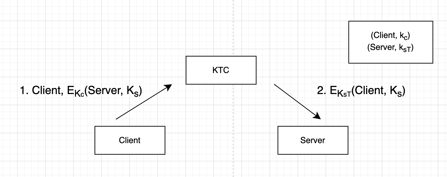 - Step1 : 클라이언트는 서버와 사용할 세션 키 Ks를 생성한 후 Kc를 이용하여 암호화 후 KTC로 전달
