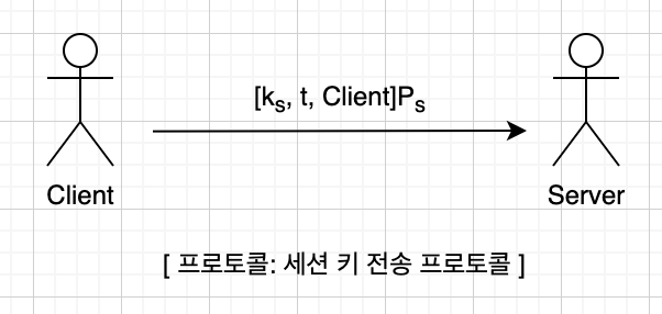 - Step1 : 클라이언트가 서버에게 자신이 선정한 세션 키를 대칭 키로 암호화하여 전송