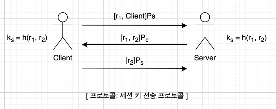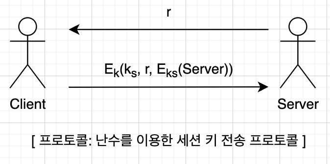 ks = 클라이언트가 생성한 세션키, r = 서버가 생성한 랜덤 값, Eks(Server) = 세션 키로 암호화한 서버 ID