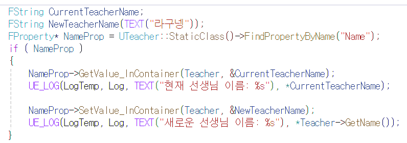 NameProp->GetValue_InContainer(Teacher, &CurrentTeacherName);