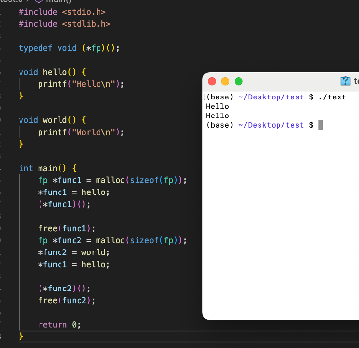 함수를 실행시키는 부분은 (*func1)() 과 (*func2)() 두 부분이다. 그 결과 Hello / World가 출력되어야 하는데, 이미 프리된 메모리에 접근해서 값을 바꾸니 func2가 가리키는 함수가 달라지는 것을 확인할 수 있다. 그 결과, Hello / Hello 가 출력되었다. 이를 공격자가 악용하기로 마음먹고 공격한다면 굉장히 큰 악영향이 있을 수 있다. 함부로 실행되면 안되는 함수를 실행시킬 수도 있을 것이다. 그리고, 이번 과제가 이를 이용하여 플래그를 출력하는 함수를 실행하는 것이다.