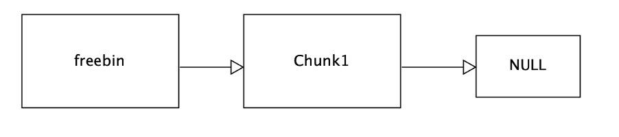 bin이 Chunk1을 가리키고, Chunk1의 fd가 NULL을 가리킨다. 이때, 더블 프리가 발생하면 다음과 같은 구조가 된다.
