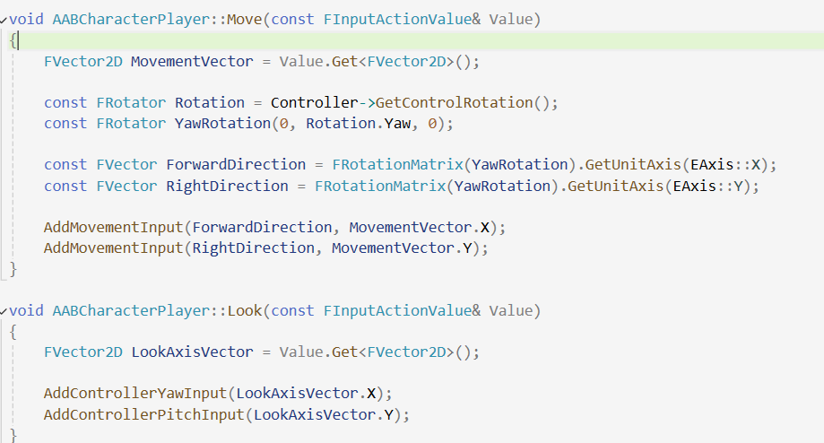 EnhancedInputComponent->BindAction(LookAction, ETriggerEvent::Triggered, this, &AABCharacterPlayer::Look);