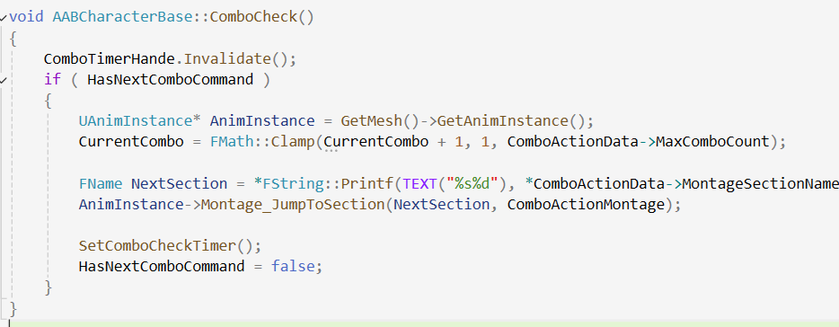 CurrentCombo = FMath::Clamp(CurrentCombo + 1, 1, ComboActionData->MaxComboCount);