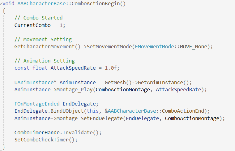 EndDelegate.BindUObject(this, &AABCharacterBase::ComboActionEnd);