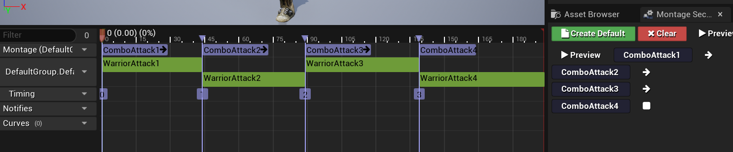타이머 끝나면 ComboCheck 불리는데, 입력 들어온 게 있으면 다음 몽타주 섹션으로 점프