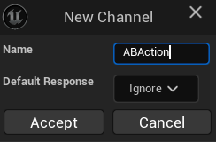 - 액션 판정을 위한 트레이스 채널의 생성 : ABAction, 기본 반응은 무시