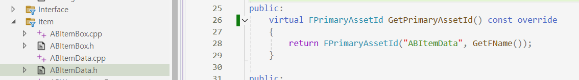 일단 ABItemData에서 PrimaryAssetId() 만들어줌
