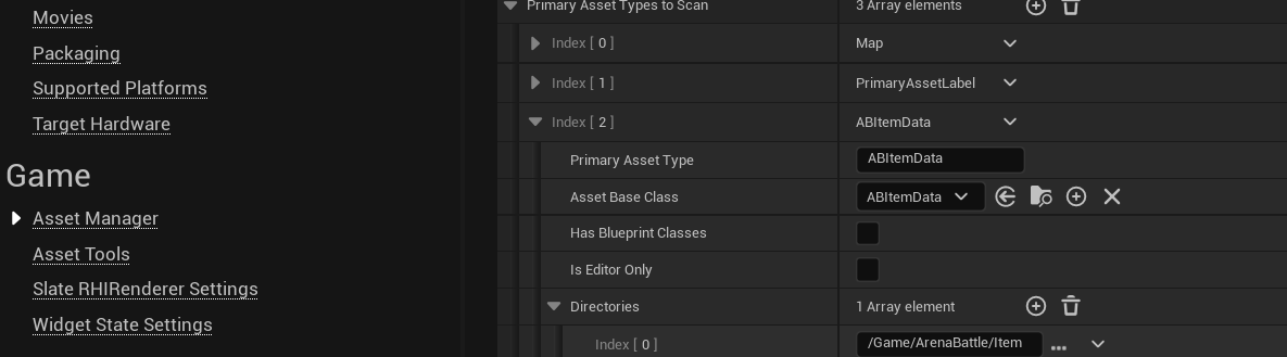 - PrimaryAssetId는 태그와 이름의 두가지 키 조합으로 구성됨 (PrimaryAssetTag / PrimaryAssetName)