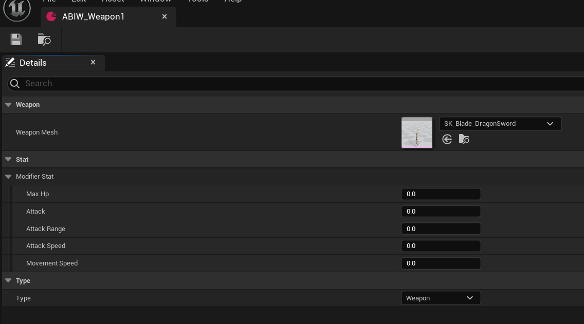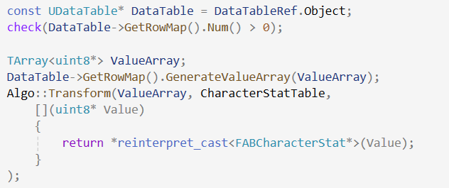 - 액셀의 Name 컬럼을 제외한 컬럼과 동일하게 UPROPERTY 속성을 선언