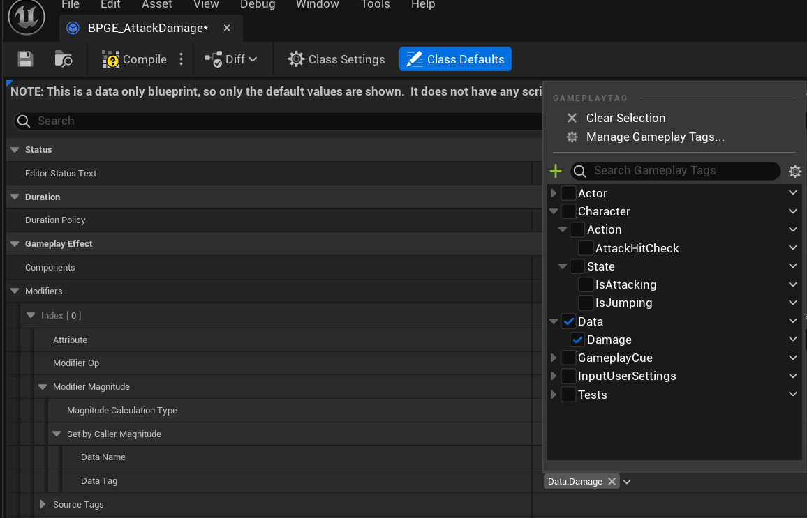 - SetByCaller : 데이터 태그를 활용한 데이터 전달 (대미지를 전달하는 주체가 데이터 다 준비하고 받기만 하라고 날림)