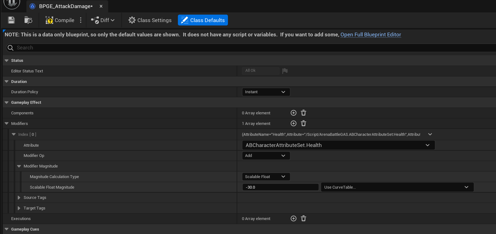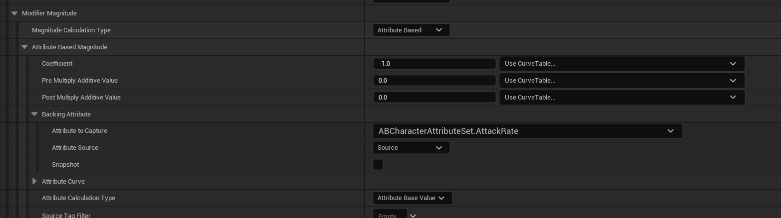 - 모디파이어 없이 자체 계산 로직을 만드는 것도 가능 (GameplayEffectExecutionCalculation)