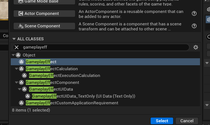 - 게임플레이 이펙트 스펙 : GE와 관련된 정보를 담고 있는 객체
