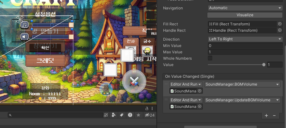 그리고 BGM 업데이트 시 UpdateVolume Call 하도록 슬라이더에 연결