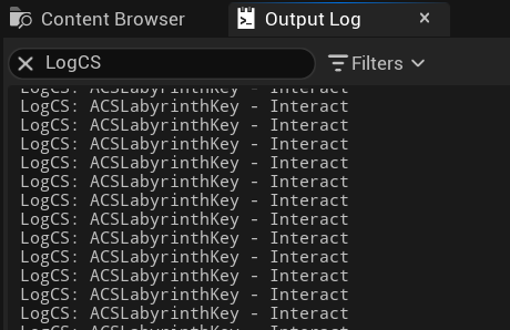 UE_LOG(LogCS, Log, TEXT("ACSLabyrinthKey - Interact"));