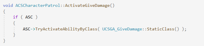 void UCSGA_GiveDamage::ActivateAbility(const FGameplayAbilitySpecHandle Handle, const FGameplayAbilityActorInfo* ActorInfo, const FGameplayAbilityActivationInfo ActivationInfo, const FGameplayEventData* TriggerEventData)