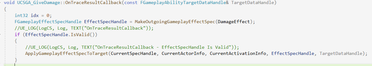 //UE_LOG(LogCS, Log, TEXT("OnTraceResultCallback - EffectSpecHandle Is Valid"));