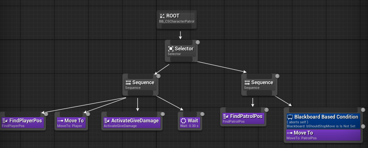 왼쪽 시퀀스에서 MoveTo성공 시 플레이어를 어느 정도 따라 잡았다는 이야기이다