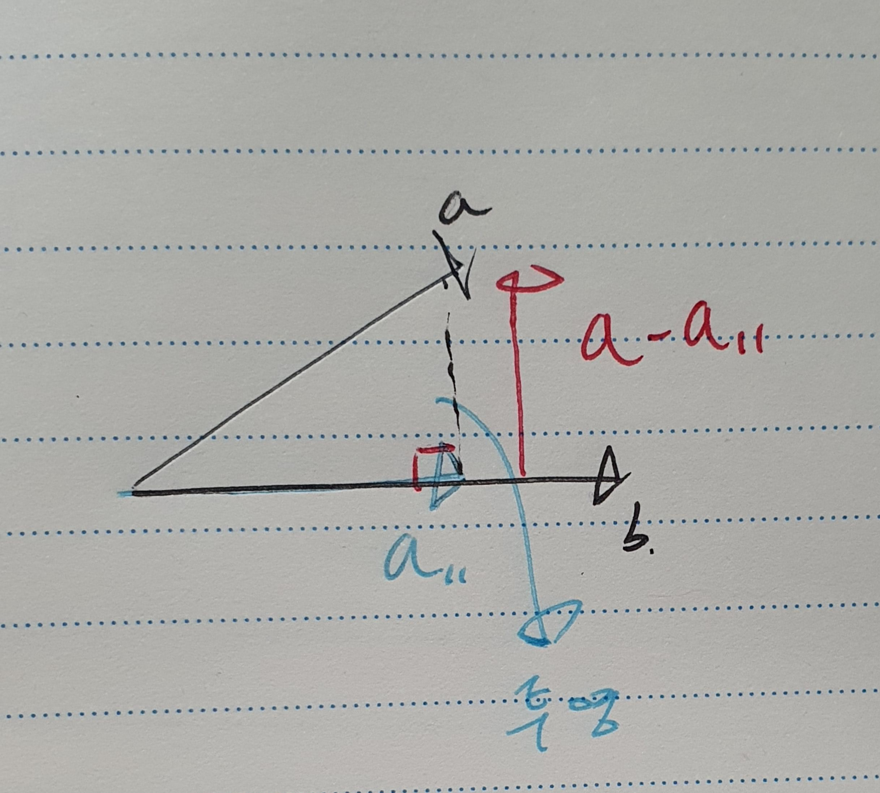 그런데 이걸 a - a|| 하면 b에 수직인 성분으로 분해 가능하다