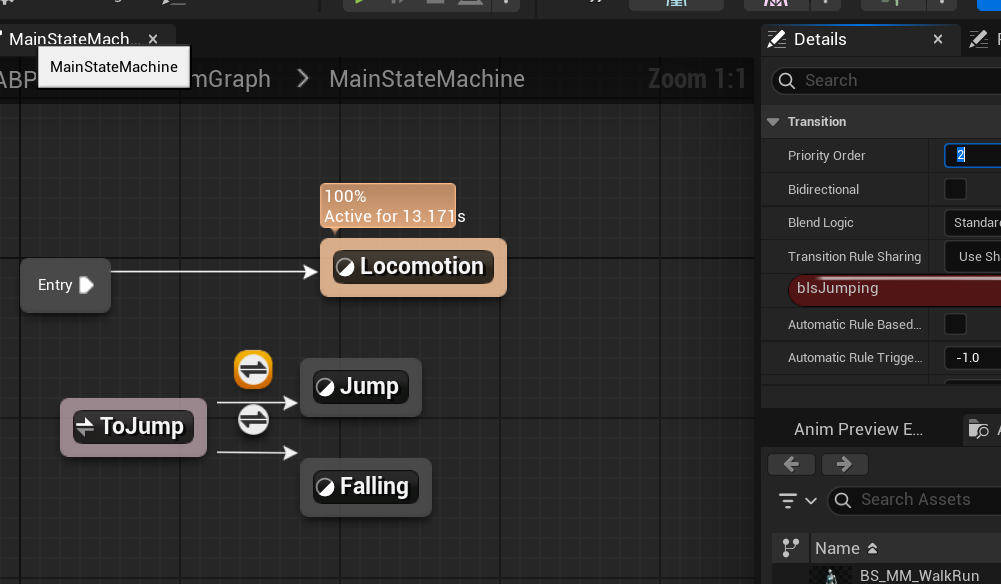 전이 조건이랑 애니메이션 애셋 넣어주고