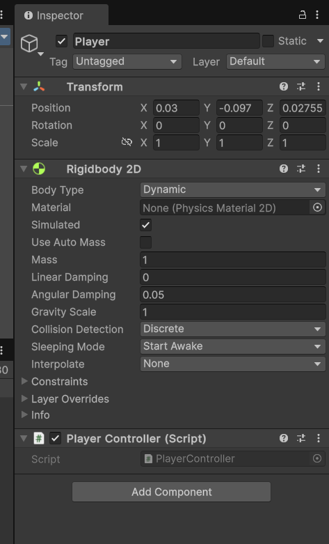 RigidBody2D → 유니티2D 물리 (속도, 힘 등)