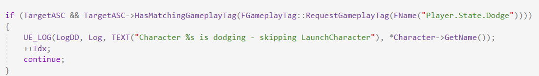 #define DDTAG_STATE_DODGE FGameplayTag::RequestGameplayTag(FName("Player.State.Dodge"))