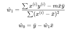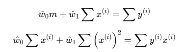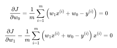 위의 시그마 풀고 w1, w0에 대해 정리하면 이렇게 됨