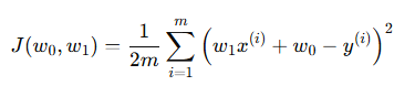 - 비용함수 J가 최소화될 때 까지 반복, w0와 w1 학습