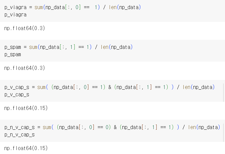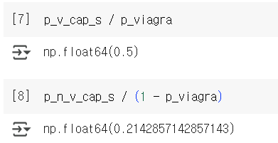 viagra라는 단어가 포함되었을 때 스팸메일일 확률은 아닐때보다 확률이 높음