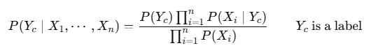 - 나이브 베이지안 분류기(Naive Bayesian Classifier) : 여러 개의 열을 사용하여 분류기 구성