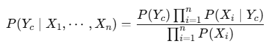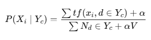 - 각 단어 xi가 하나의 클래스인 Yc에 속하는 모든 문서에 존재하는 개수