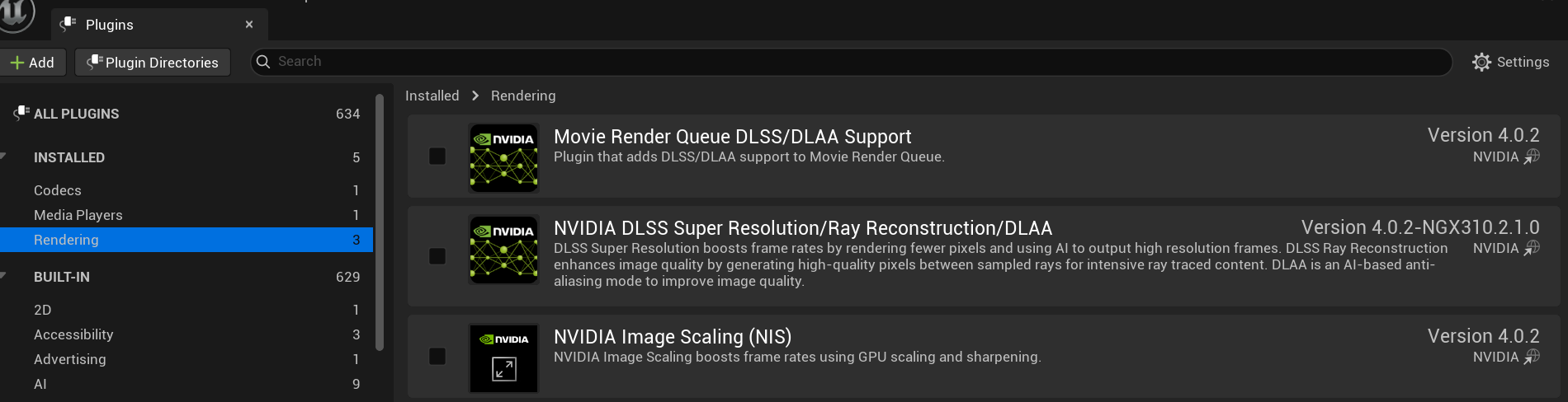 이제 엔진의 Plugin 가보면 DLSS 생겨 있음
