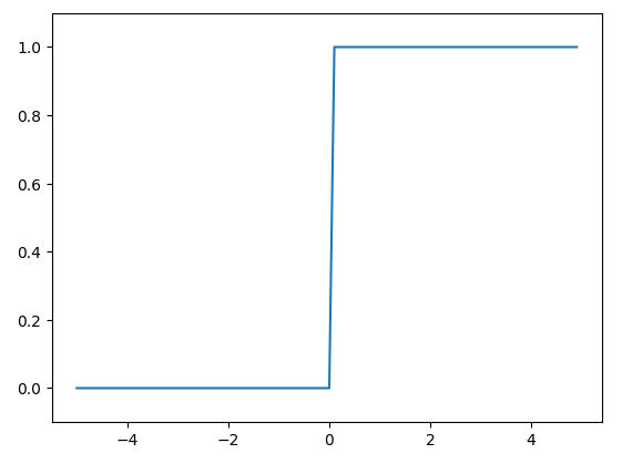 - 계단 함수는 0을 경계로 출력이 갑자기 바뀜