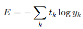- 여기서 yk 는 신경망의 출력(신경망이 추정한 값), tk는 정답 레이블, k는 데이터의 차원 수