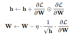 - : 누적된 제곱 그래디언트