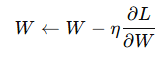 - ∇L(W): 손실 함수 의 가중치에 대한 그래디언트