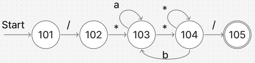 단, a는 * 이외의 모든 문자, b는 *와 /을 제외한 모든 문자