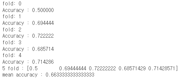 print("5 fold :", acc)