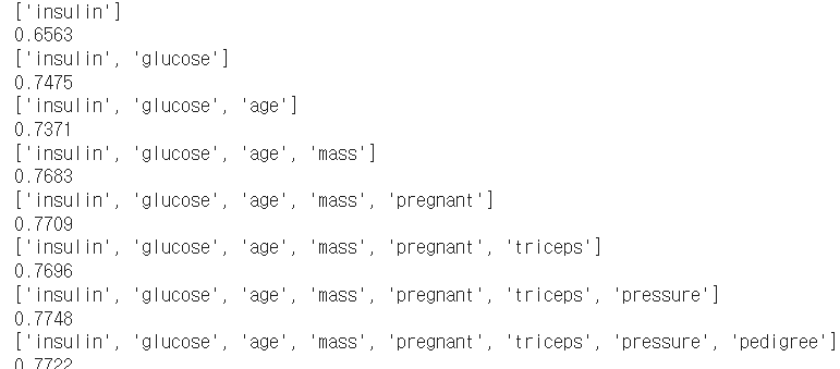 - Foward selction : 좋은 피쳐를 추가해 나가는 방식