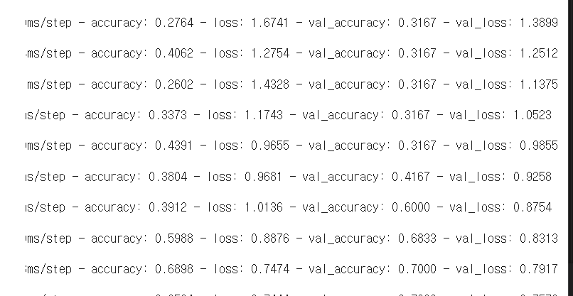 이렇게 에폭당 정확도 보여줄 수도 있음