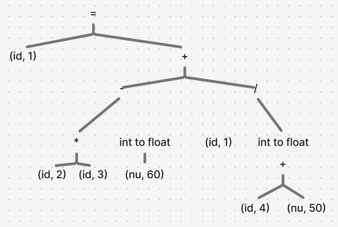 - 주어진 생성 규칙의 의미에 의해 형의 해당 자료 구조 구성, 자료 구조 기호표에 보관