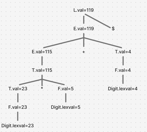 ex. 산술식에 대한 주석 파스 트리