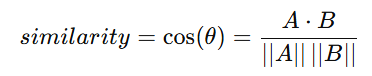 - 주로 사용되는 방법은 코사인 유사도나 유클리디안 거리 등의 수학적 척도