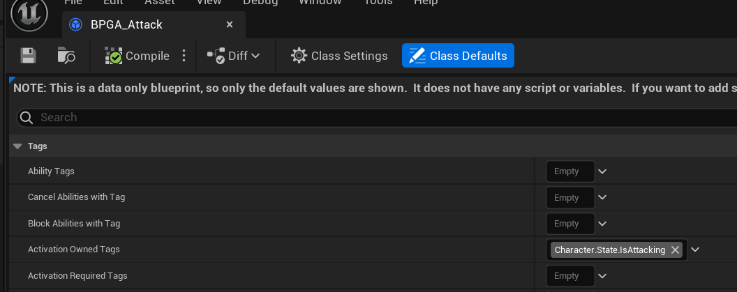 - 게임플레이 태그 설정은 블루프린트에서 설정하는 것이 의존성 분리에 도움이 됨